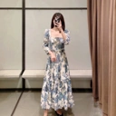 New Porcelain Maxi Dress Premium Bahan : Chiffon + Furing Size : LD ( Lingkaran dada ) 80 - 94cm LP ( lingkaran pinggang ) 70 - 84cm ** Badan bagian belakang full karet ** Inner full lapis furing tidak tembus
