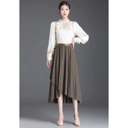 Vicky Pleated Layer Front Skirt Bahan : Thick & Shine Pleated Polyester Detail : Pinggang full karet Size : LP ( lingkar pinggang ) 60-78 cm P ( panjang )86 cm